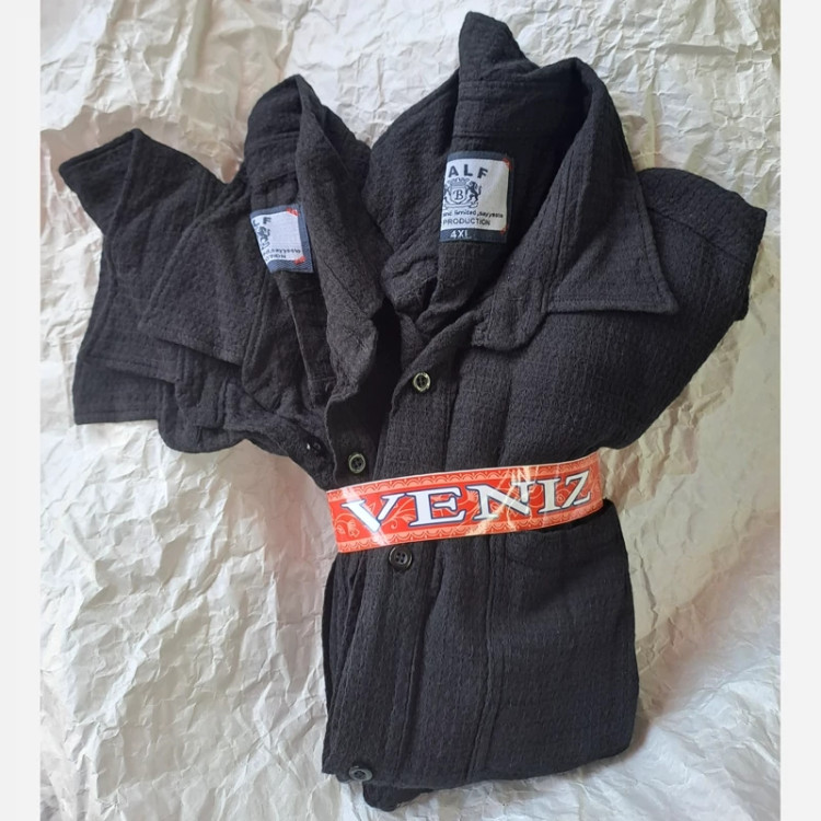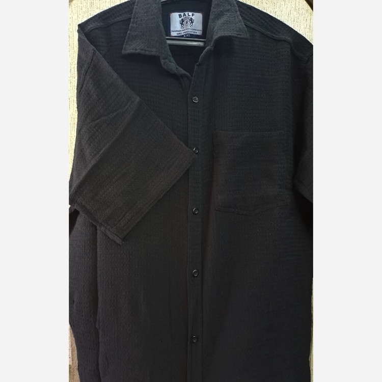 👔 پیراهن مردانه کنفی بیسکویتی مشکی نخی آستین 3ربع جدید