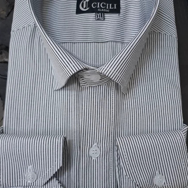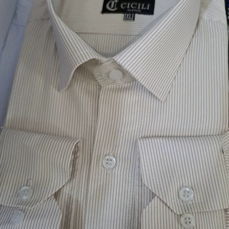 پیراهن مردانه نخ پنبه کلاسیک راه راه ریز روشن شیک
