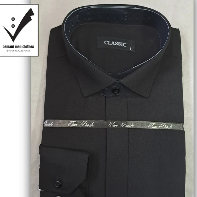 👔 پیراهن مردانه مشکی اسپرت تترون نخی شمیم جدید